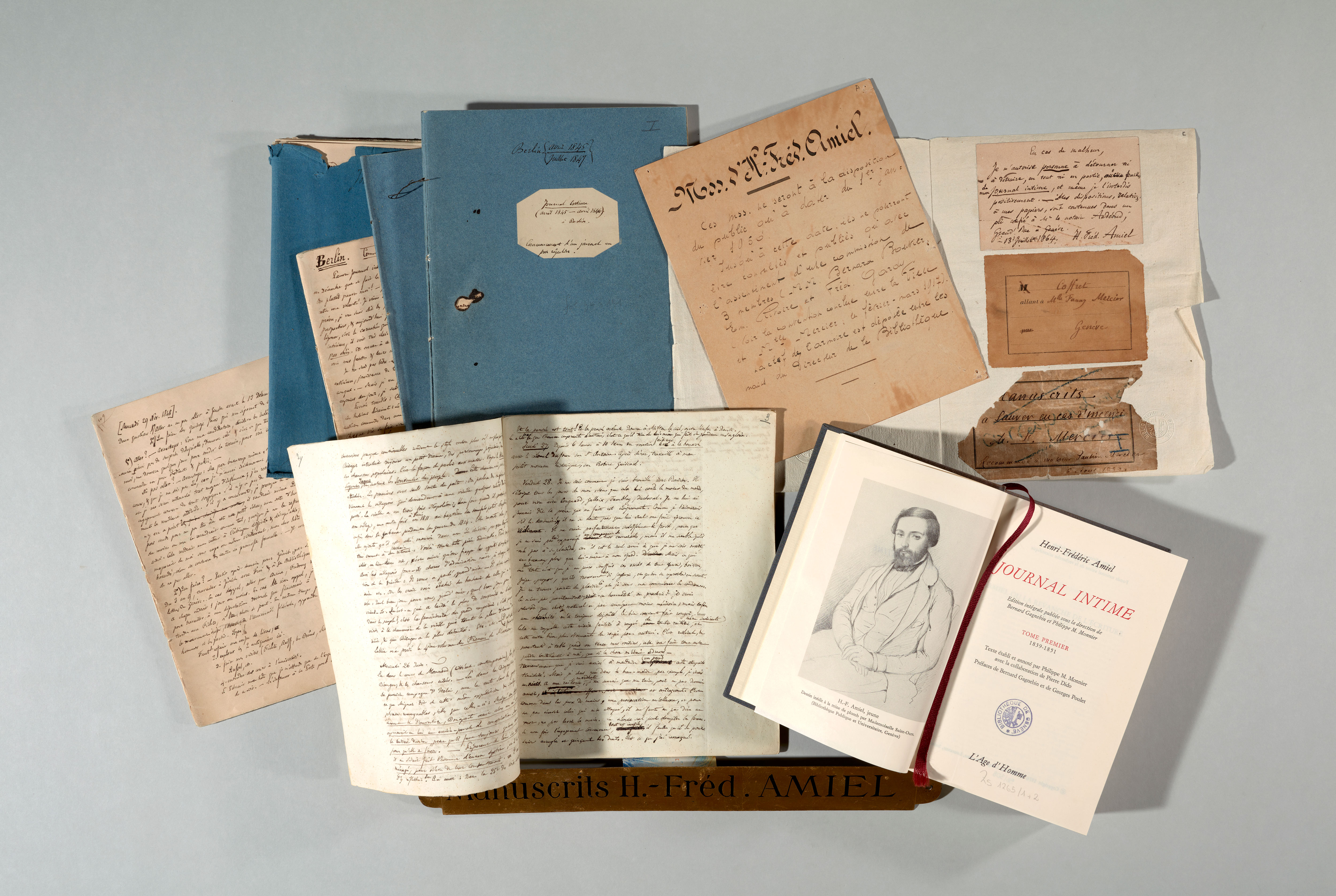 Ce formidable manuscrit est remis en don à la Bibliothèque de Genève en 1917, selon la volonté d’Amiel et de ses héritiers. D’autres documents ont suivi. Les «Papiers Henri-Frédéric Amiel» constituent aujourd’hui un fonds de 14 mètres linéaires composé de papiers personnels, correspondances, œuvres, manuscrits scientifiques, journal intime, cours et travaux universitaires, papiers de familles ou encore correspondances familiales.